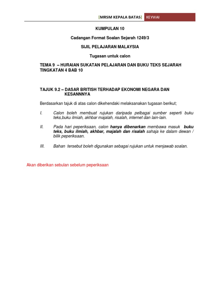 Bab 10 Kertas 3 Sejarah Dasar British Pdf